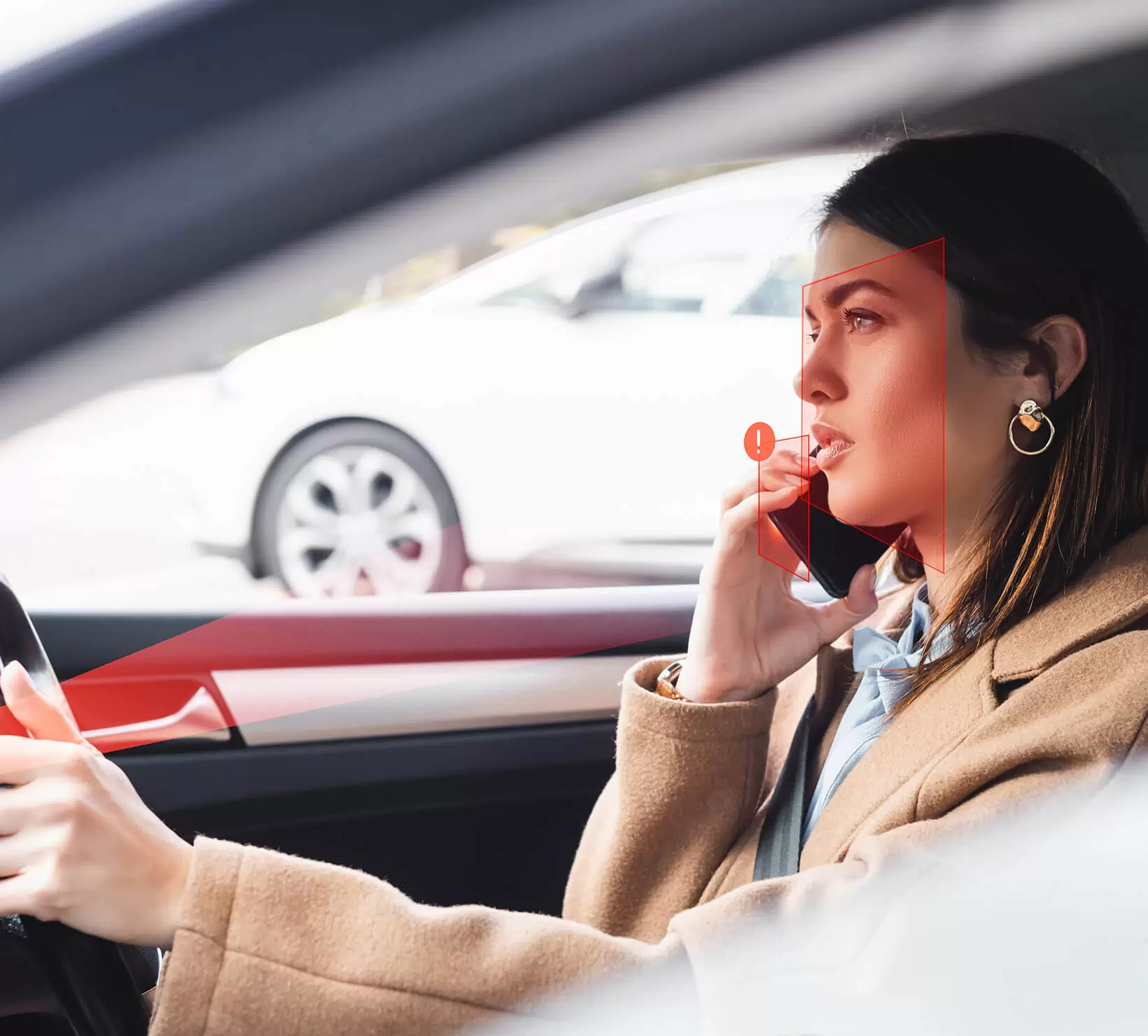 The Wi-Fi Vision-AI Driver Monitoring System uses a highly sensitive image sensor and invisible 940nm IR LEDs to capture images inside the cabin. The system can recognize up to 100 drivers and accurately determine their behaviors like inattention, dozing, smoking, using a phone, etc.