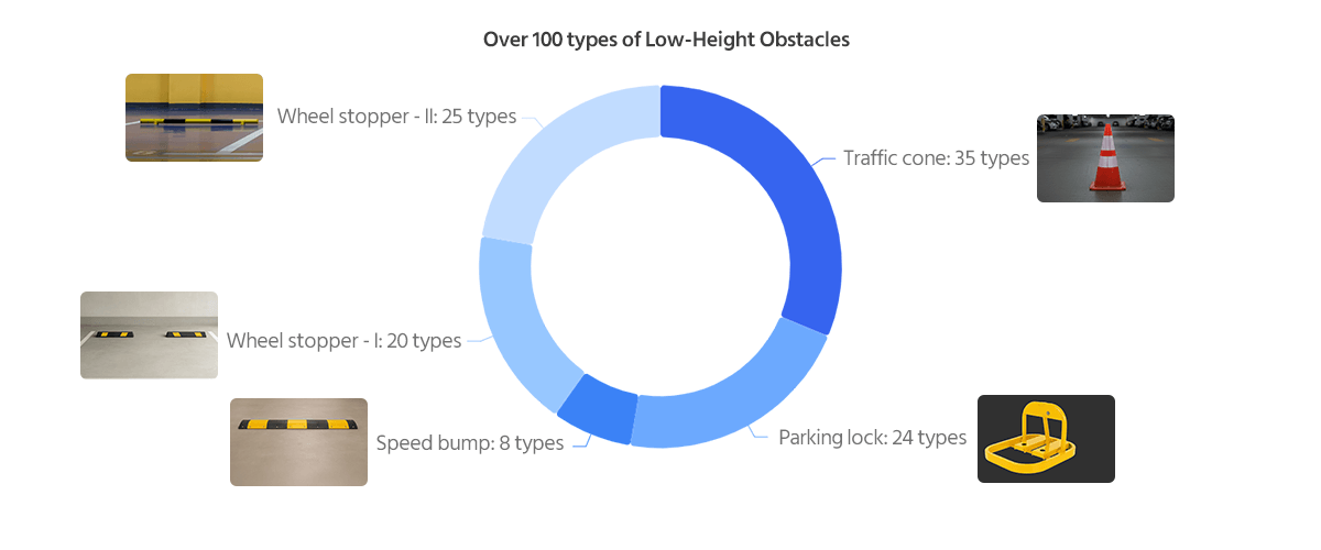 Figure 5. The system classifies over 100 types of low-height obstacles, including traffic cones, wheel stoppers, parking locks, and speed bumps.