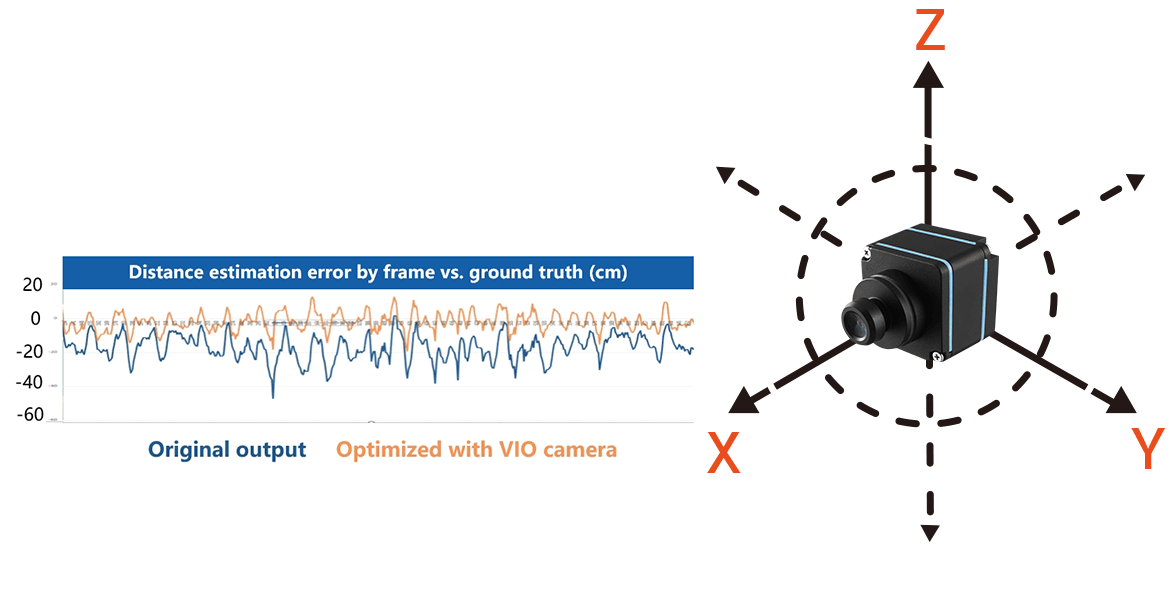 The automotive VIO (Visual-Inertial Odometry) camera integrates an Inertial Measurement Unit (IMU) to deliver data on acceleration and angular velocity after using the Kalman filter. This enables effective compensation for vibrations, offering stable image output and more accurate distance measurement. The camera enhances navigation and obstacle avoidance capabilities for autonomous robots and unmanned vehicles, ensuring reliable performance in dynamic real-world scenarios.